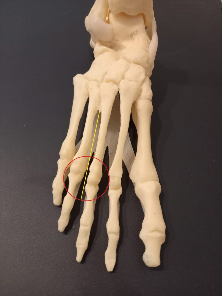 Een Tailor’s Bunion is een bult aan de buitenzijde ter hoogte van het kleine teengewricht. Er is veel eeltvorming rond het gewricht. Soms is er sprake van extra botuitgroei. De tailor’s bunion ontstaat vaak doordat er teveel druk staat op de buitenzijde van de voorvoet. Het kan ook voorkomen dat de tailor’s bunion ontstaat door een standsawijking van de het middenvoetsbeentje van de kleine teen. Tailor betekent in het Engels kleermaker. Tijdens kleermakerszit ontstaat er druk op de buitenzijde van de kleine teen. Deze zithouding kan ook een tailor’s bunion veroorzaken.