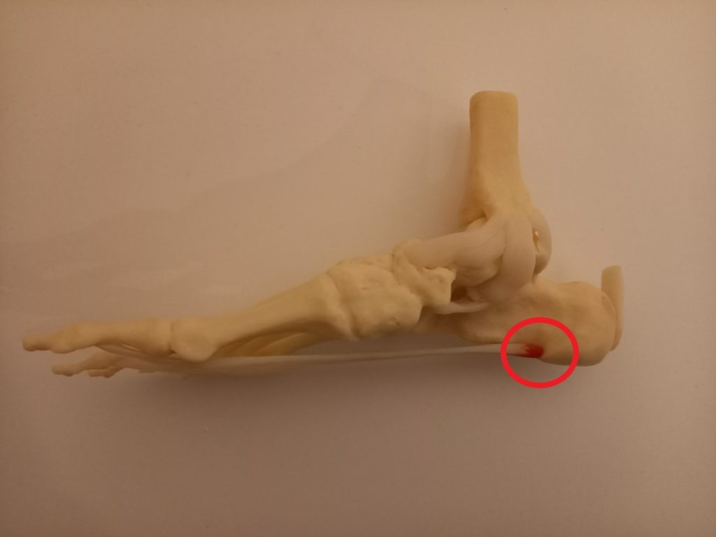 De pees trekt dan hard aan de plek waar deze vast zit aan de hiel. Dit zorgt voor pijn op deze plek.
